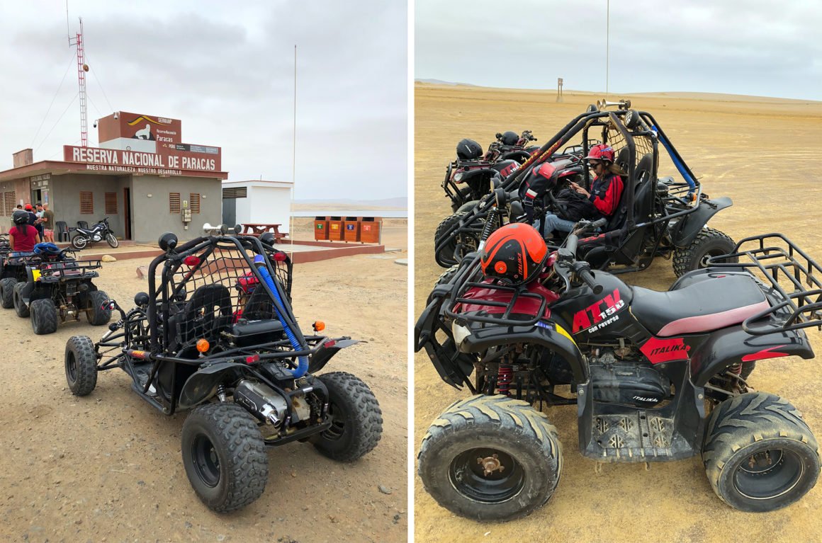 Tomamos algo en un bar y descansamos antes de nuestra siguiente actividad. Íbamos a ir en cuatrimoto (boogie) a recorrer el Parque Nacional de Paracas. Fueron un poco más de dos horas por maravillosos paisajes, vistas al océano realmente espectaculares y sobretodo … nos llenamos de tierra, pero fue divertido. Una actividad a no perderse en esta ruta por Perú en dos semanas.