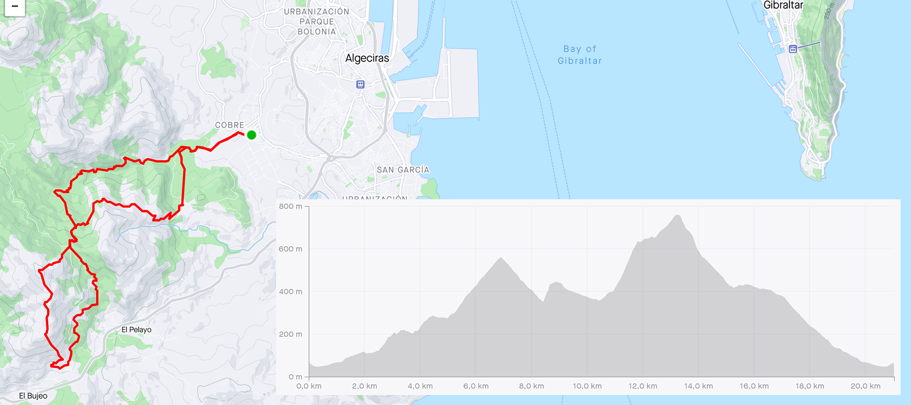 La etapa de la mañana es una preciosa media maratón por los bosques mediterráneos del Parque Natural los Alcornocales de Algeciras (Cádiz), disfrutando de sus técnicos senderos, sus pistas rápidas, y sobre todo de las impresionantes vistas del Estrecho.