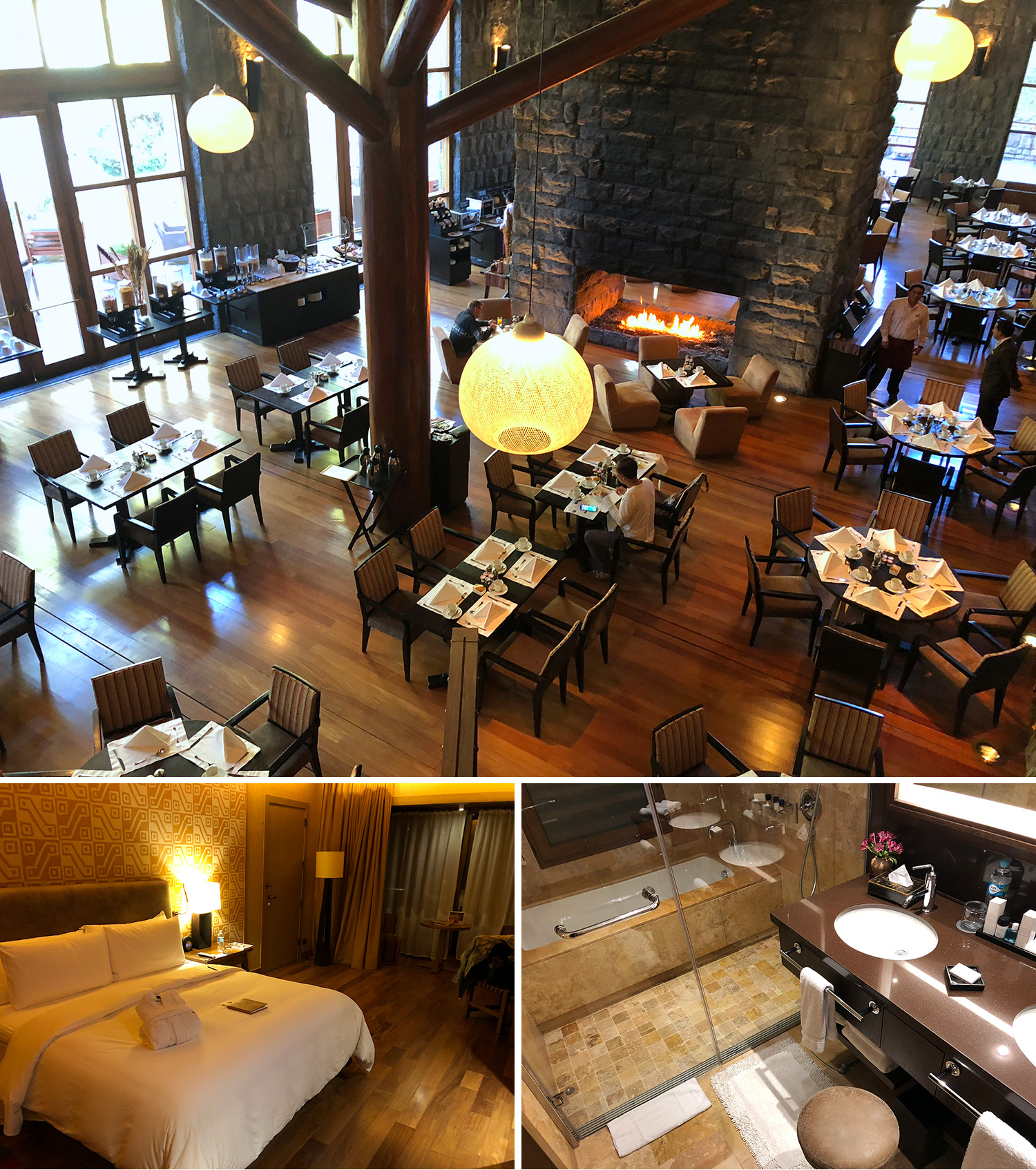 En el interior hay techos sorprendentemente altos con vigas de madera pulida, motivos incaicos y una impresionante chimenea de piedra en el vestíbulo, así como en la parte baja del maravilloso restaurante. Todo ello con grandes ventanales que ofrecen vistas de las montañas y de los cuidados jardines que rodean el complejo.